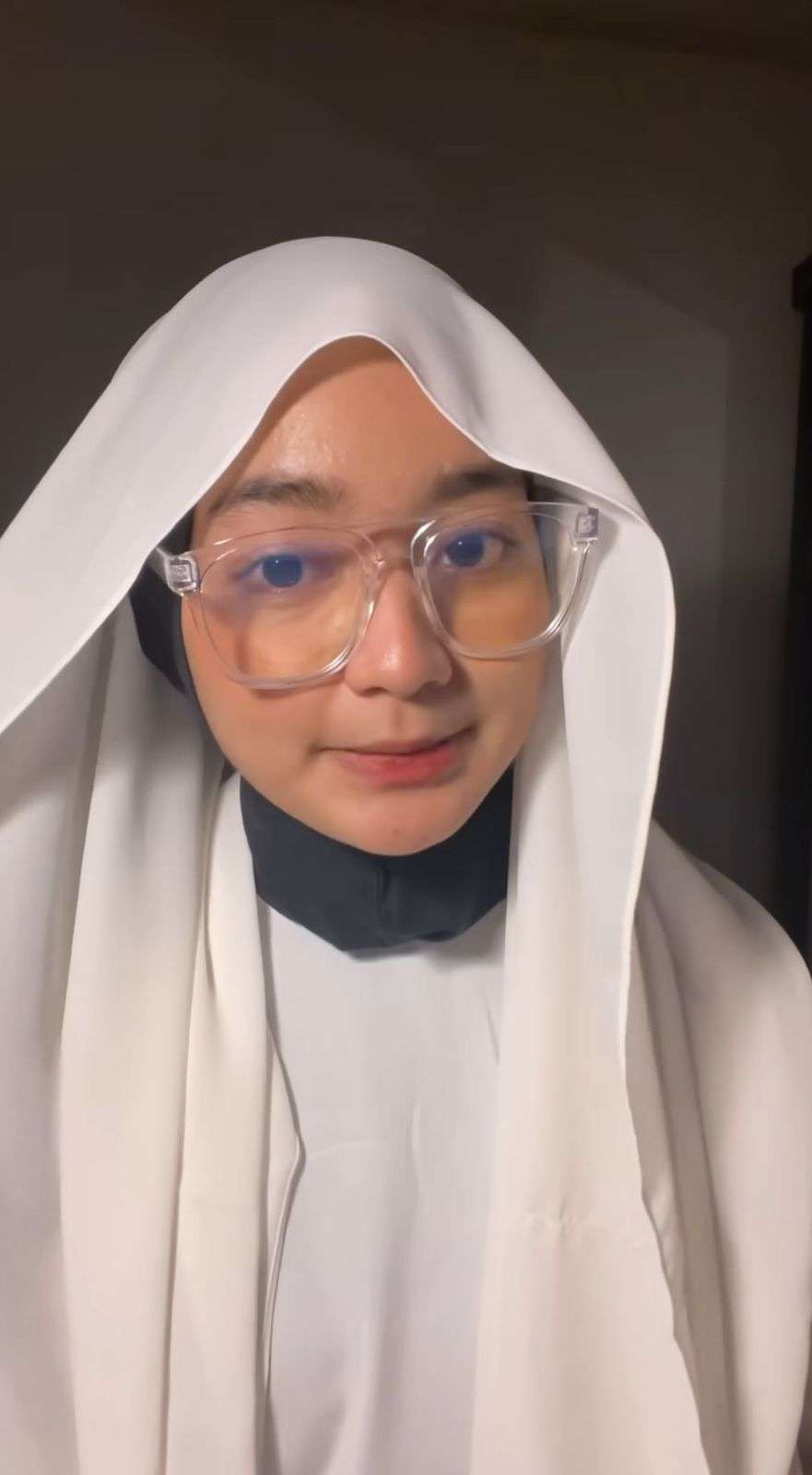 Tampilan kerudung bisa terlihat terlalu kencang karena ketarik oleh kacamata yang digunakan. Bisa juga jadi miring dan tidak rapi.