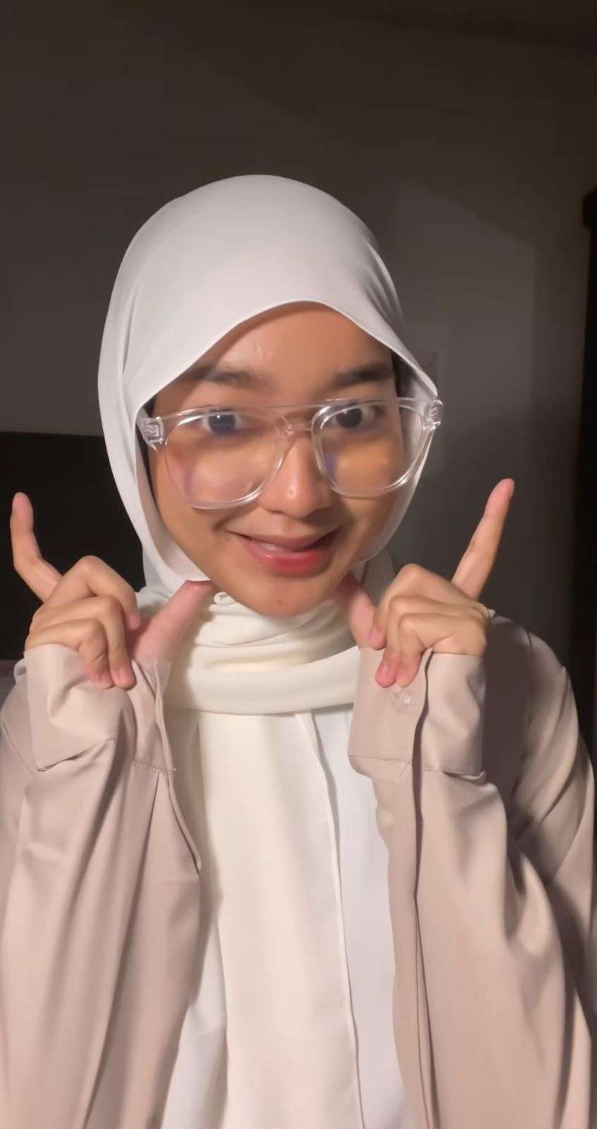 Karena dengan style ini kerudung yang membingkai wajah tidak akan terlihat ditarik oleh kacamata yang digunakan. Looknya jadi terlihat kekinian dan rapi.