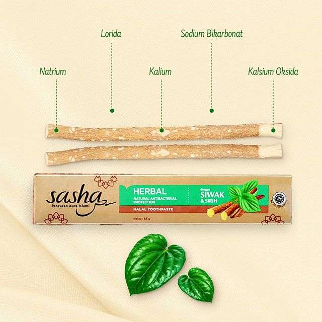 Sedangkan Sasha Whitening yang mengandung lemon dan garam yang berfungsi sebagai pemutih alami gigi. Yuk berhijrah bareng Sasha Pasta Gigi Halal Bersiwak untuk mendapatkan beragam khasiat siwak untuk menjaga kesehatan gigi dan mulut. Info lengkap klik di sini.