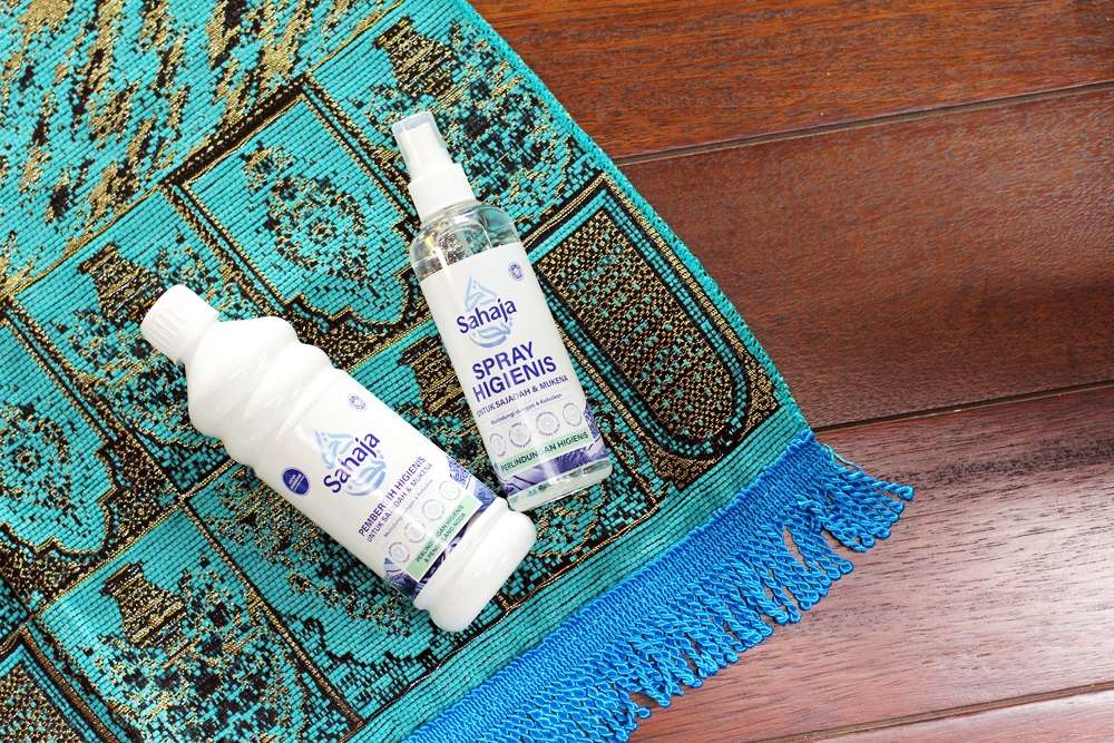 Sempat kepikiran, apa iya mukena dan sajadah harus dicuci setiap hari agar benar-benar bersih dan bebas kuman? Untungnya, Sahaja tahu jawabannya dengan menghadirkan produk Sahaja Spray Higienis. Boleh dibilang produk ini adalah pelengkap Sahada Pembersih Higienis. Jadi, biar mukena atau sajadah tak cepat rusak bahannya karena keseringan dicuci, semprot saja dengan Sahaja Spray Higienis yang telah dilengkapi kandungan bahan yang dianjurkan WHO untuk membasmi bakteri.