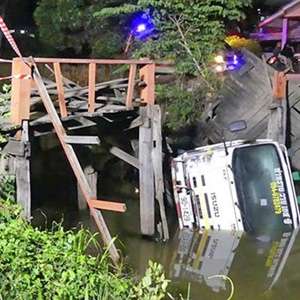 Apes jembatan yang dilaluinya ternyata sudah reot. Apalagi dia membawa kendaraan dengan beban yang cukup berat. Alhasil Wittiwat terjatuh kedalam sungai bersama kendaraan yang dikendarainya.