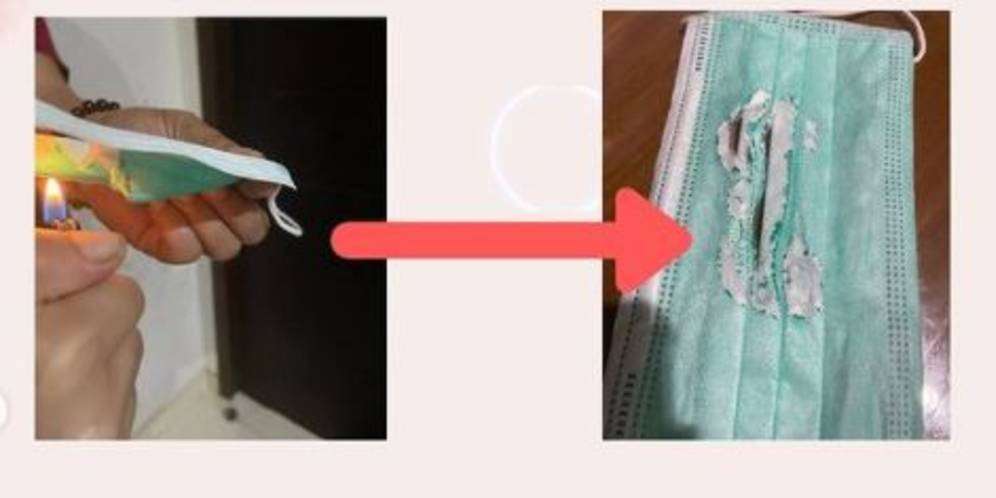 Masker medis yang asli bila dibakar akan meleleh dan tidak gosong. Jika gosong berarti ada lapisan kertas atau palsu.
