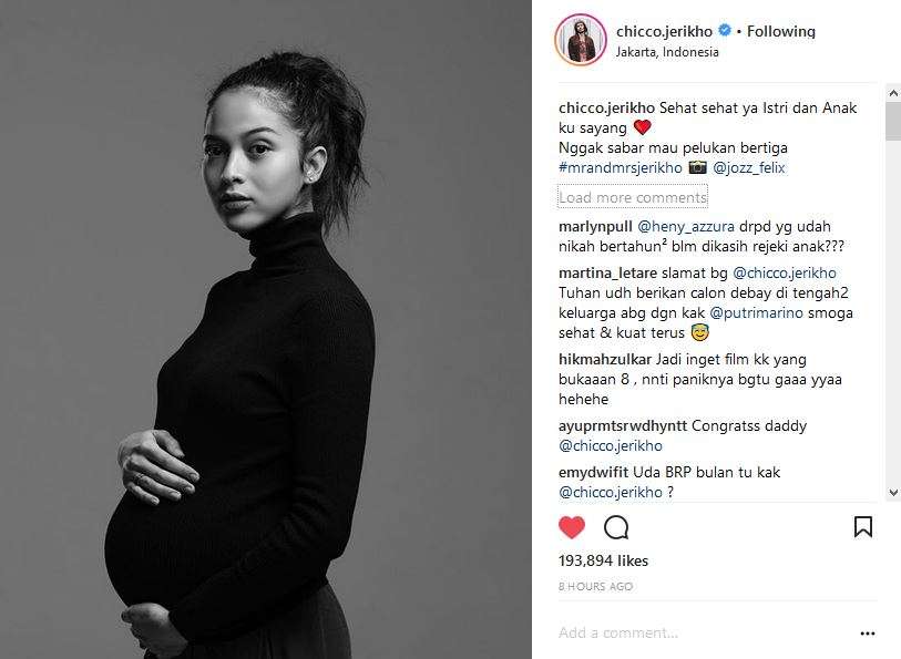 Baru-baru ini, lewat Instagram pribadi sang suami @chicco.jerikho mengunggah potret terbarunya. Ini adalah foto pertama kali yang diunggah dengan perut buncit sang istri.