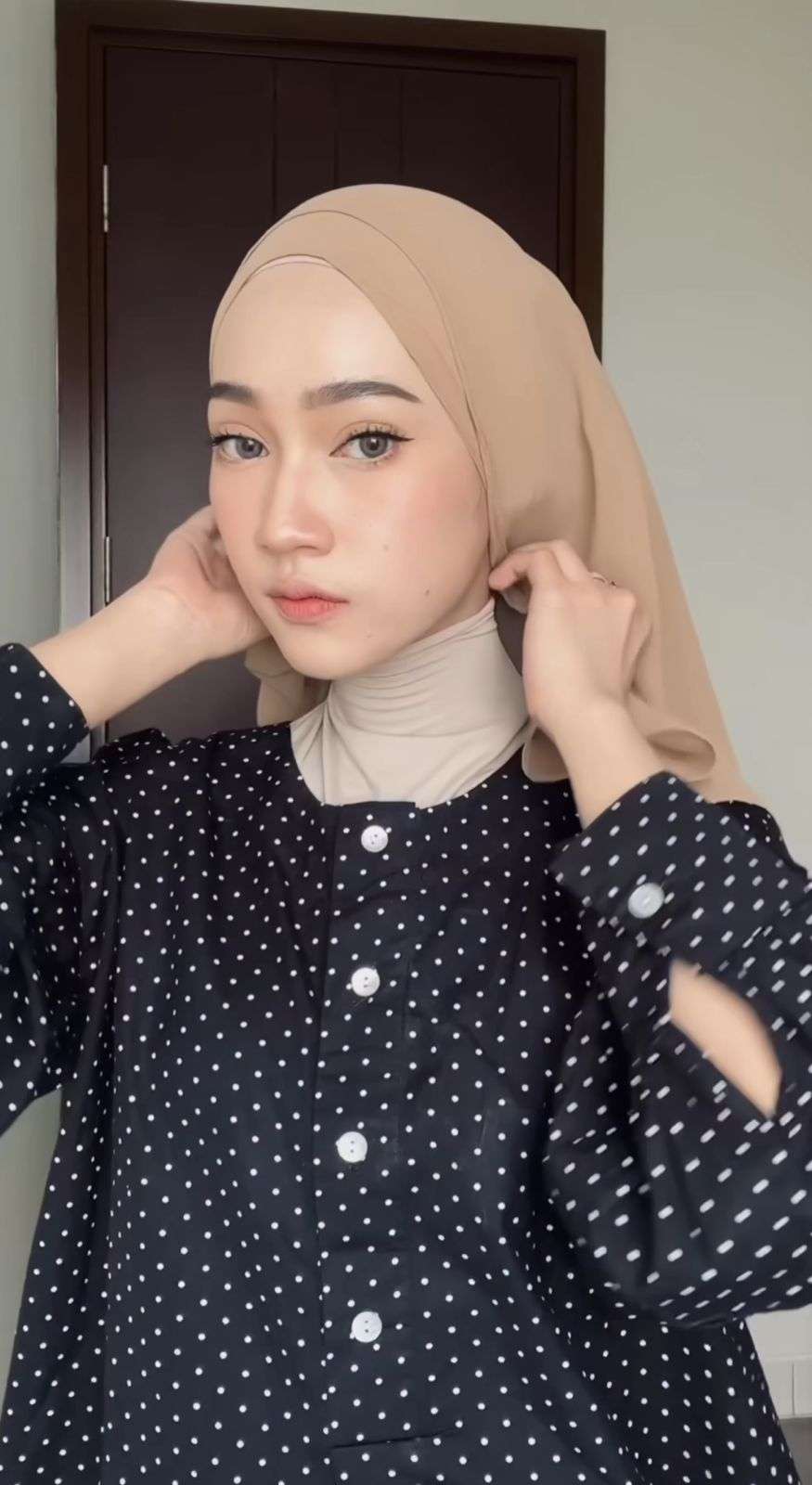 Style turban dengan leher yang tetap tertutupi sudah didapatkan.