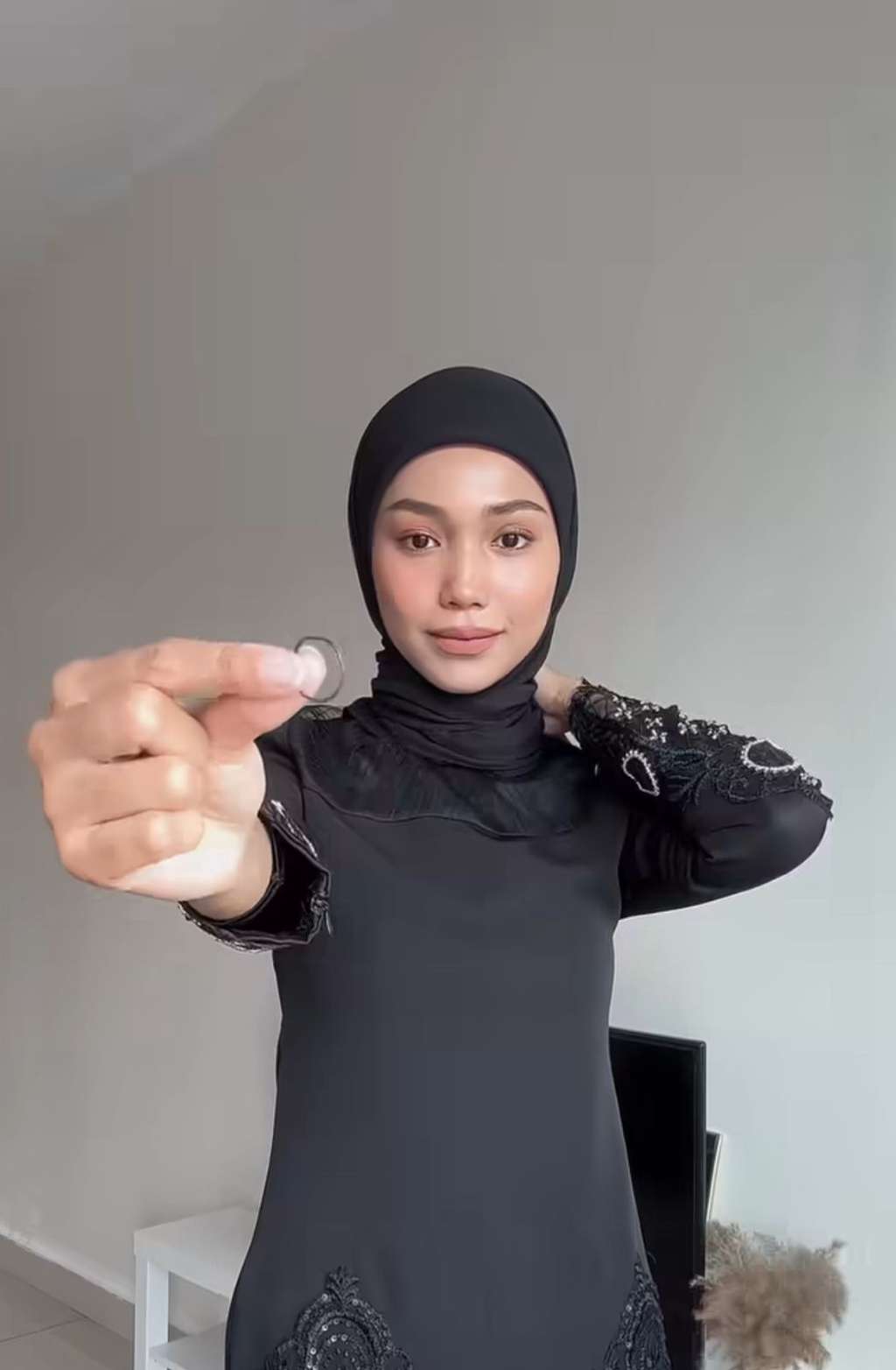 Sebagai referensi cara pakai ring hijab untuk dapatkan style clean look, bisa tiru Zurin Nasha yang merupakan seorang hijab konten kreator.