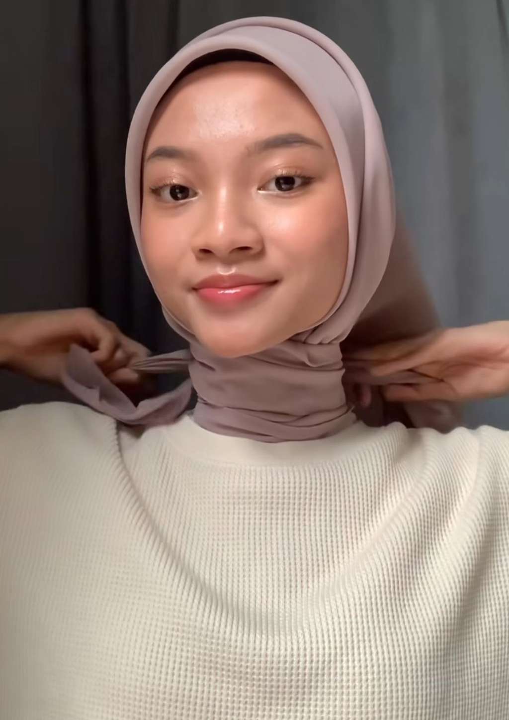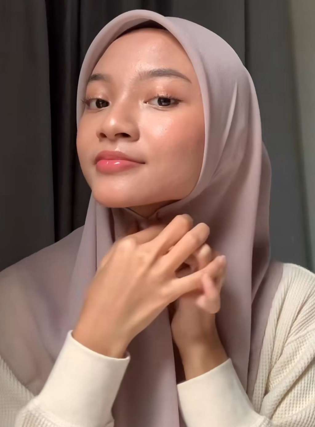 Dalam tutorial yang dibagikan, ia terlihat effortless pakai kerudung yang sudah dilipat menjadi segitiga terlebih dahulu.