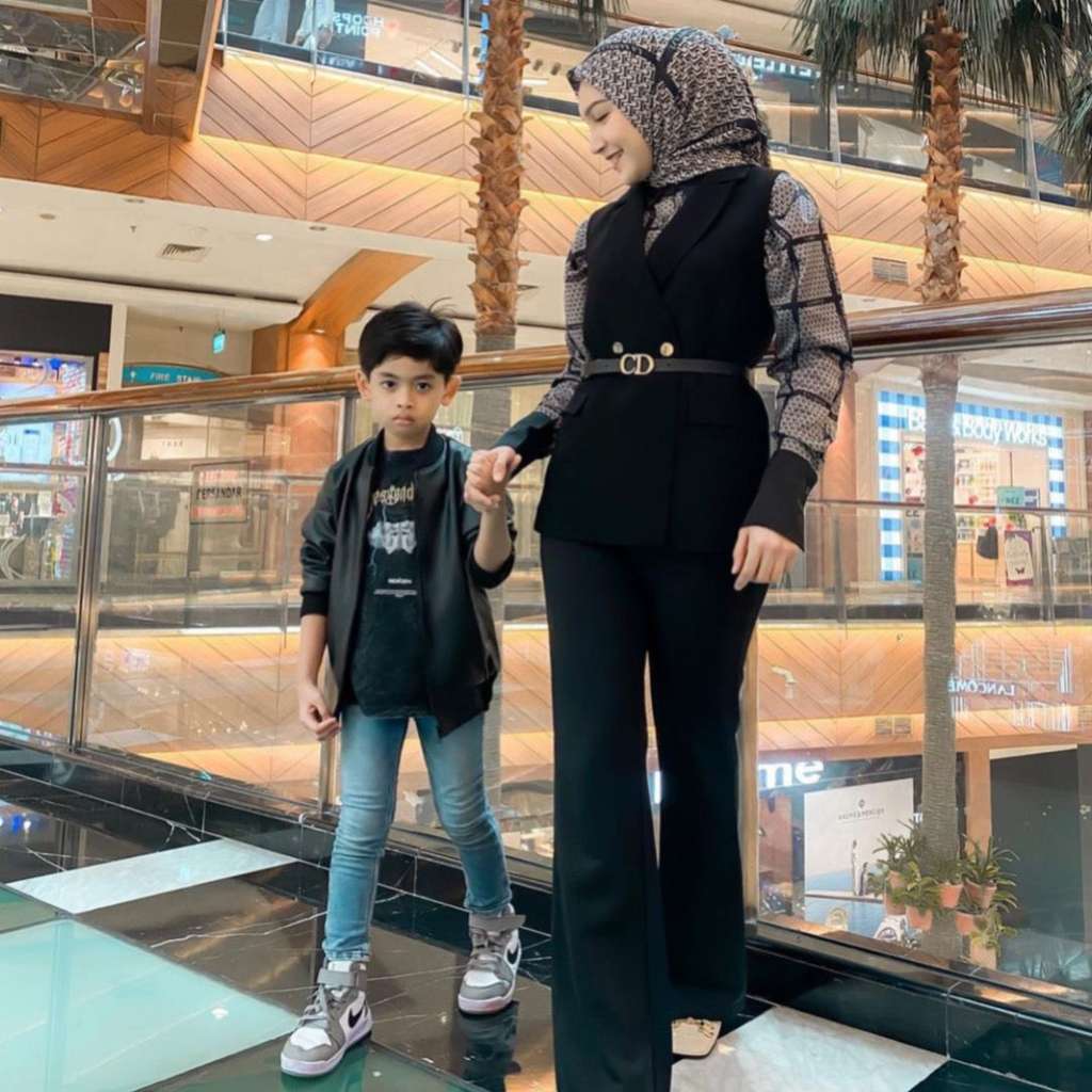 Mari kita lihat penampilan Melody saat sedang bersama putranya, Achmad Ibrahim Al-Khalifi. Dalam unggahan di Instagram, wanita 27 tahun ini terlihat sedang momong si bocah di mal.