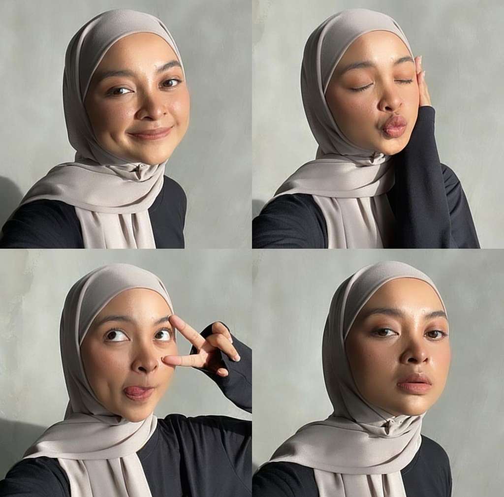 Riasan natural di wajah Dara membuat dirinya terlihat semakin cantik. Apalagi wajahnya dibingkai dengan pashmina dengan detail di bagian belakang yang akan terbang saat terkena angin.
