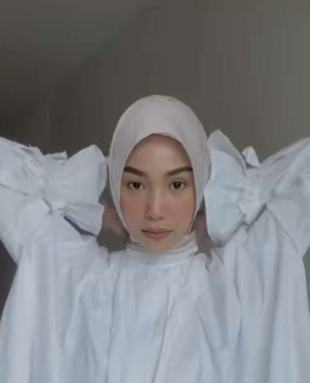 Cukup dengan mengikat kedua sisi hijab, style ini sudah bisa didapatkan. Hal tersebut dilakukan Nasha, seorang konten kreator pemilik Instagram @nashazaki_.