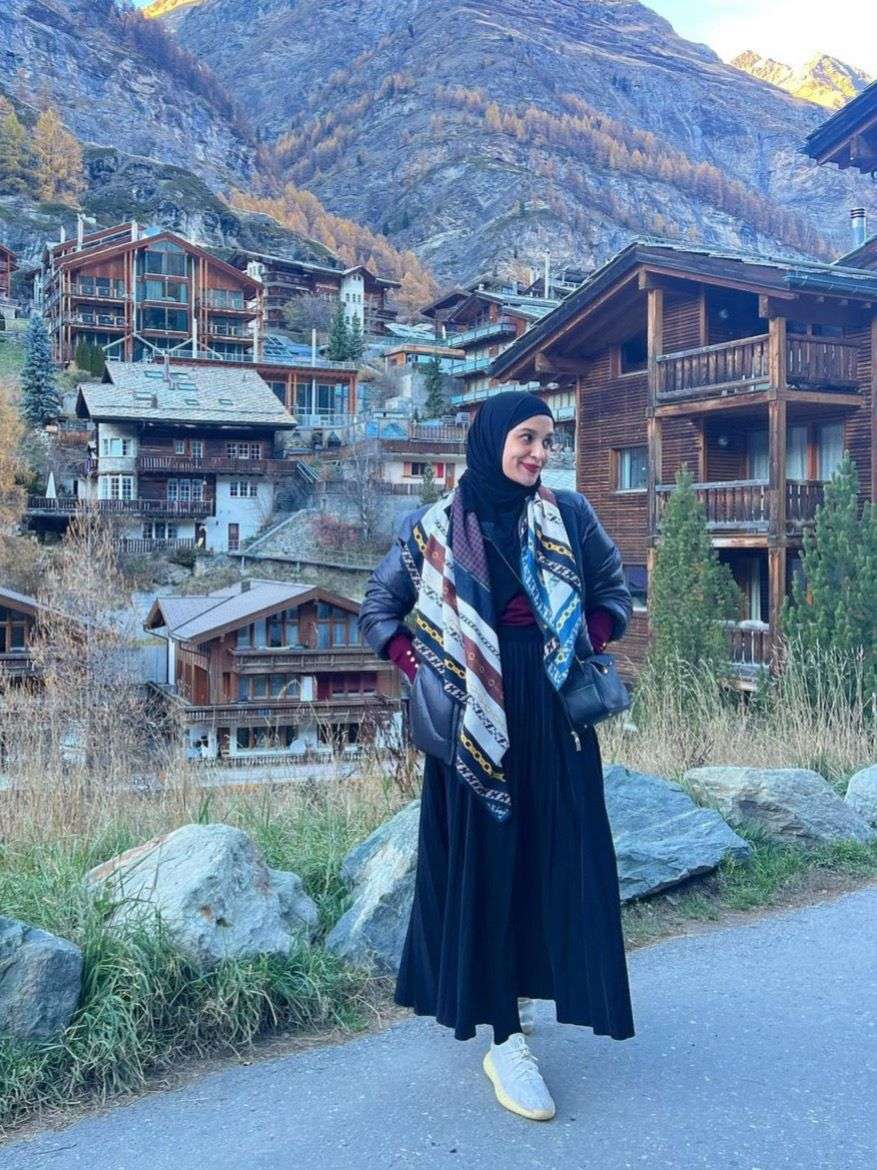 Membagikan gaya di unggahan akun Instagram, Shireen memakai winter jacket berwarna hitam yang simpel tapi bisa menghangatkan tubuhnya di tengah cuaca bersalju.