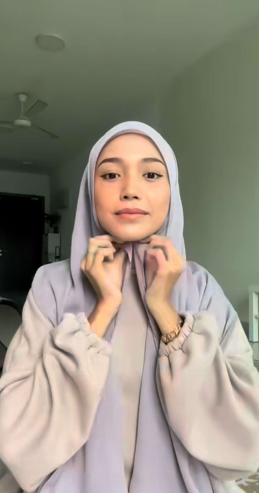 Namun Nasha tak langsung disatukan dengan jarum pentul di bagian bawah dagu. Dia mencubit sedikit bagian kerudung yang berada di bagian bawah dagu, baru kemudian dikunci dengan jarum pentul.