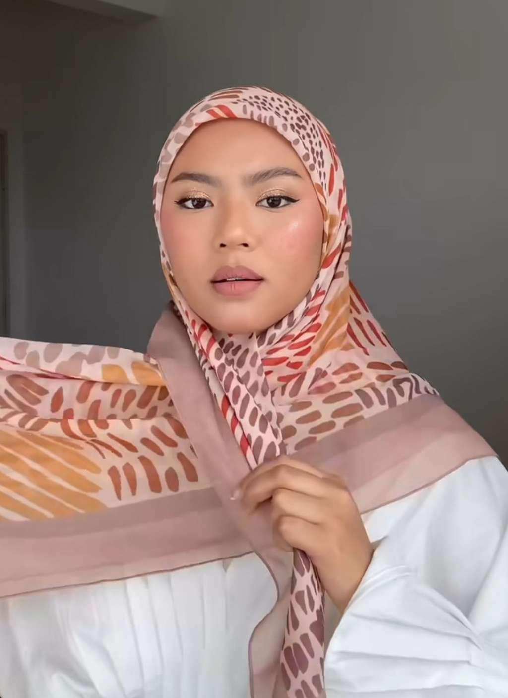 Jika baru ingin mencoba, styling menggunakan ring dari konten kreator pemilik akun Instagram @haswaniaabdrazak bisa kamu jadikan referensi. Dalam video tutorialnya, Haswania menggunakan kerudung segi empat motif.