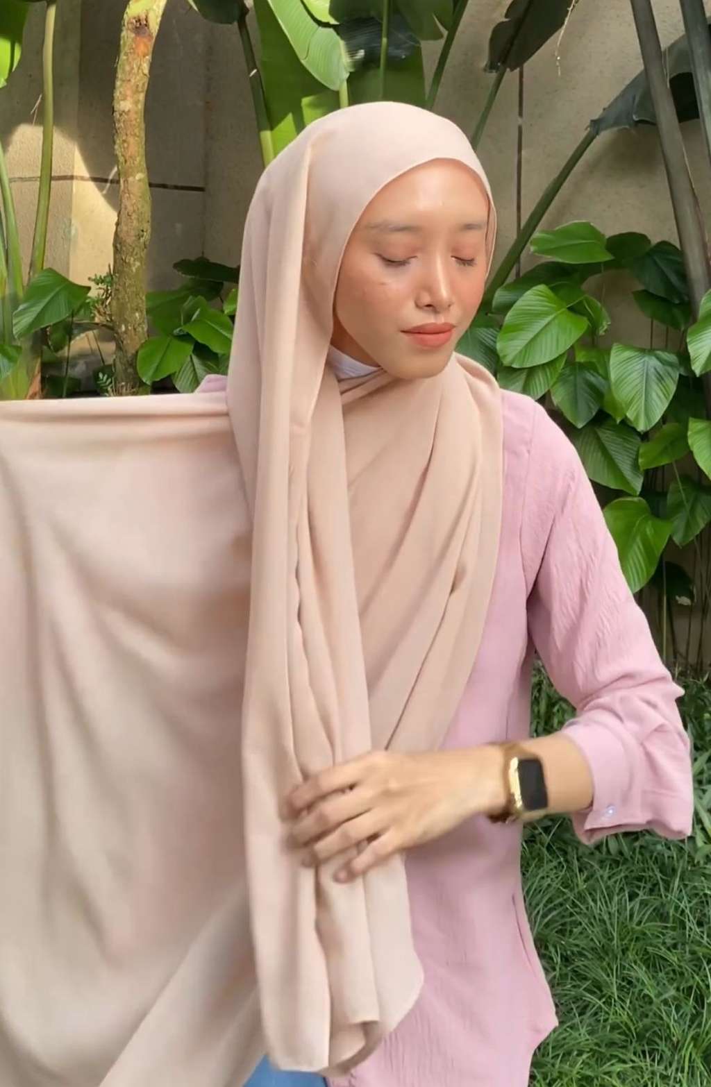 Ingin mencoba hijab flowy dengan pashmina cotton? Sebagai referensi, tengok saja tutorial dari content creator hijab di Instagram @farmirth.