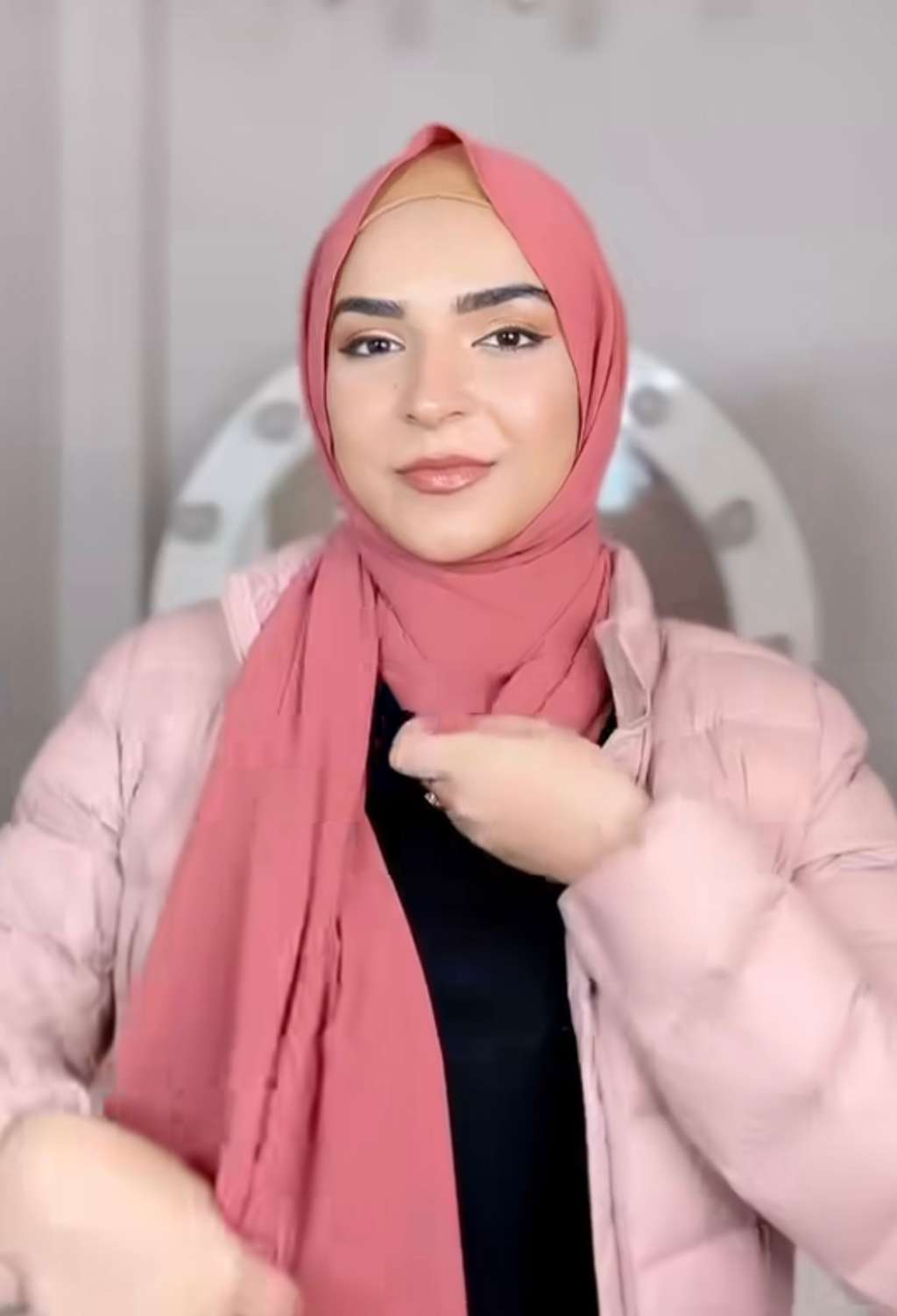 Pemilik akun Instagram @saba___jafryy membagikan tutorial memasangkan pashmina saat tampil menggunakan jaket. Hasil akhirnya adalah tampilan pashmina clean look yang bikin kamu makin stand out.