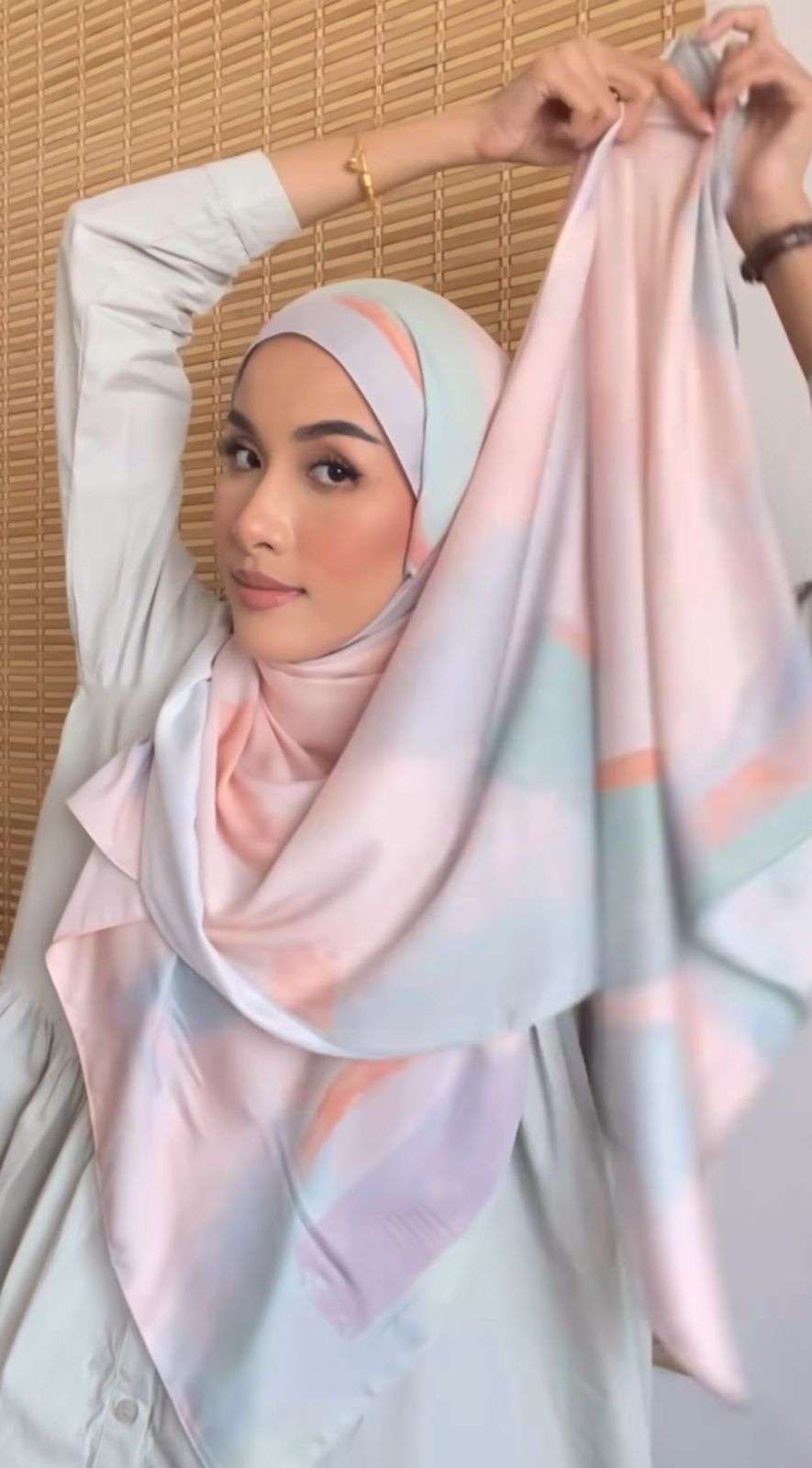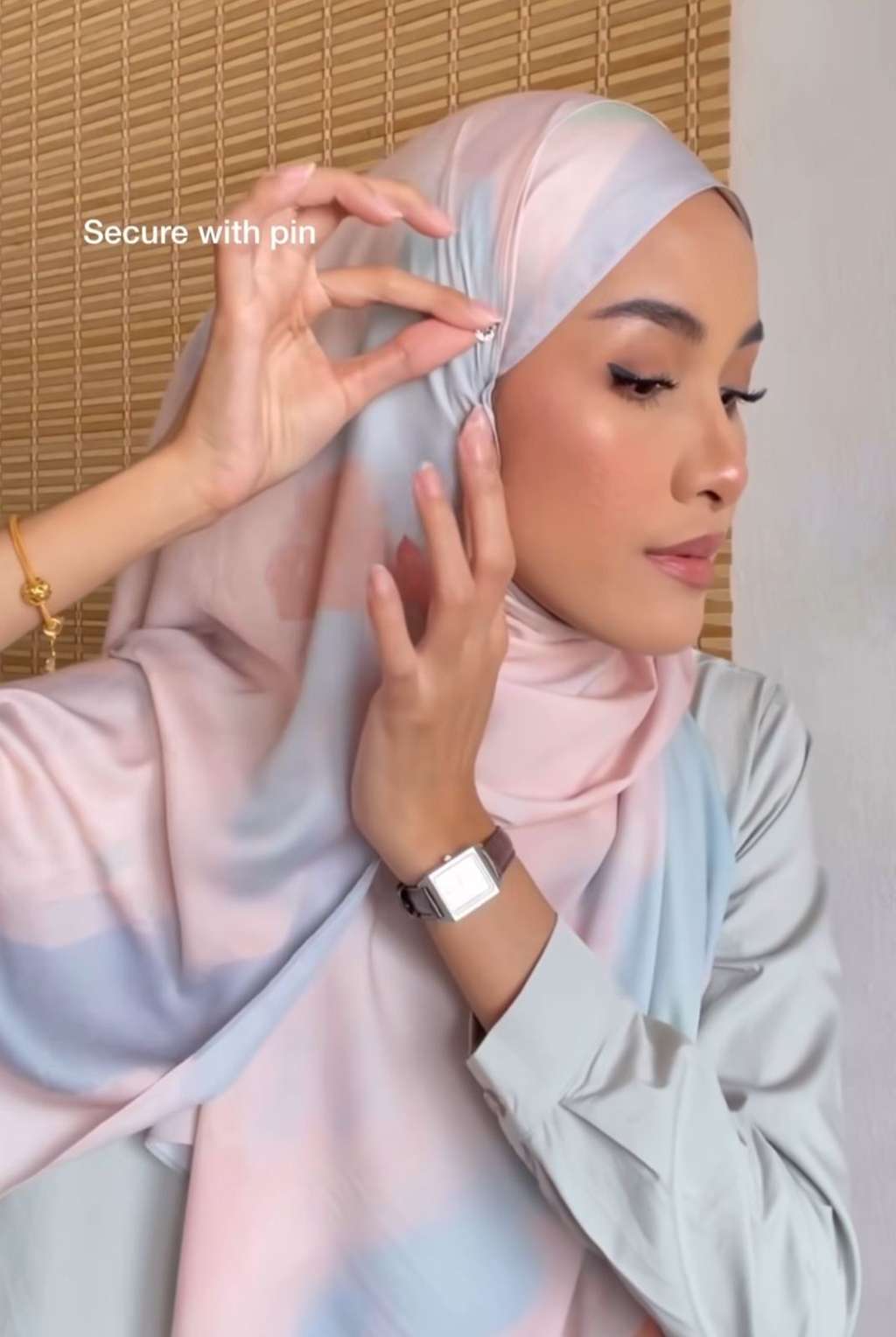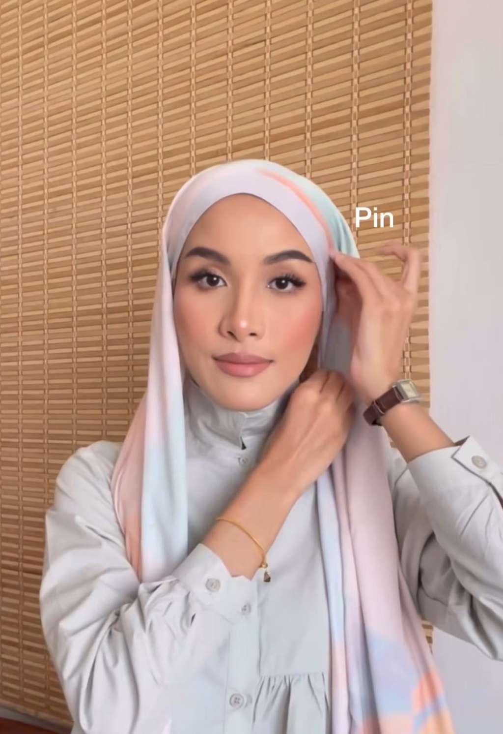 Konten kreator asal Malaysia bernama Ain Tasnim Khalil itu, membagikan tutorial saat ia mengenakan pashmina dengan style feminin yang menutupi bagian dada.