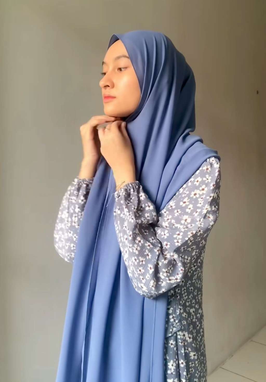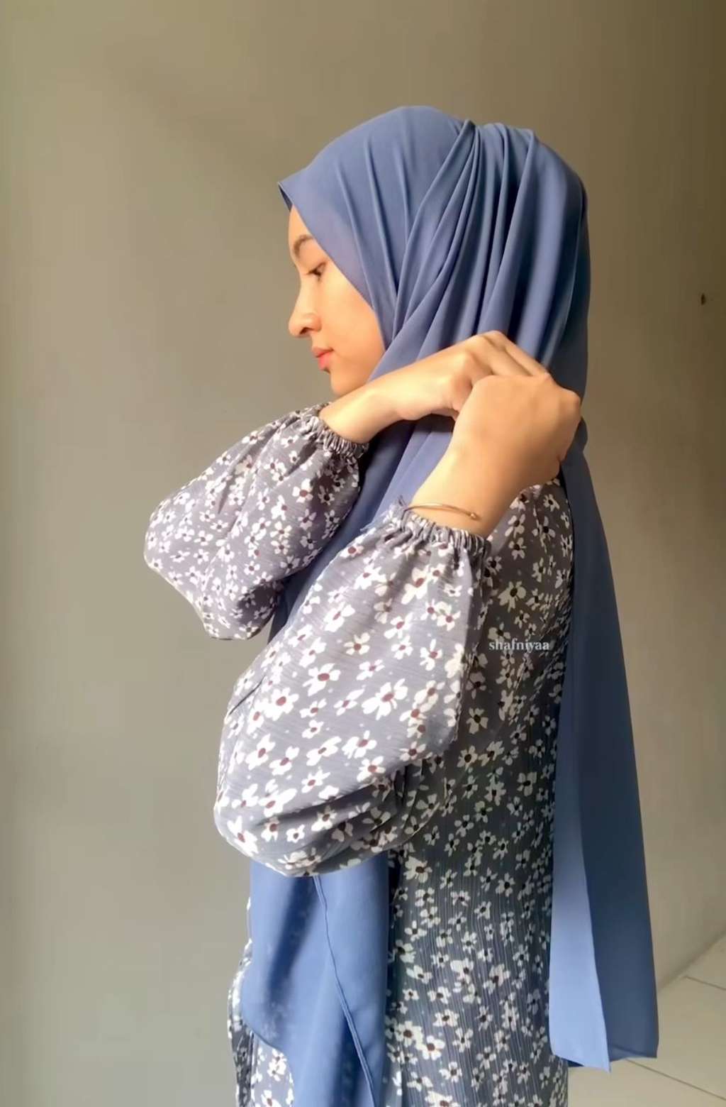 Rapikan kerudung yang berada di depan tubuh. Selesai! (x)
