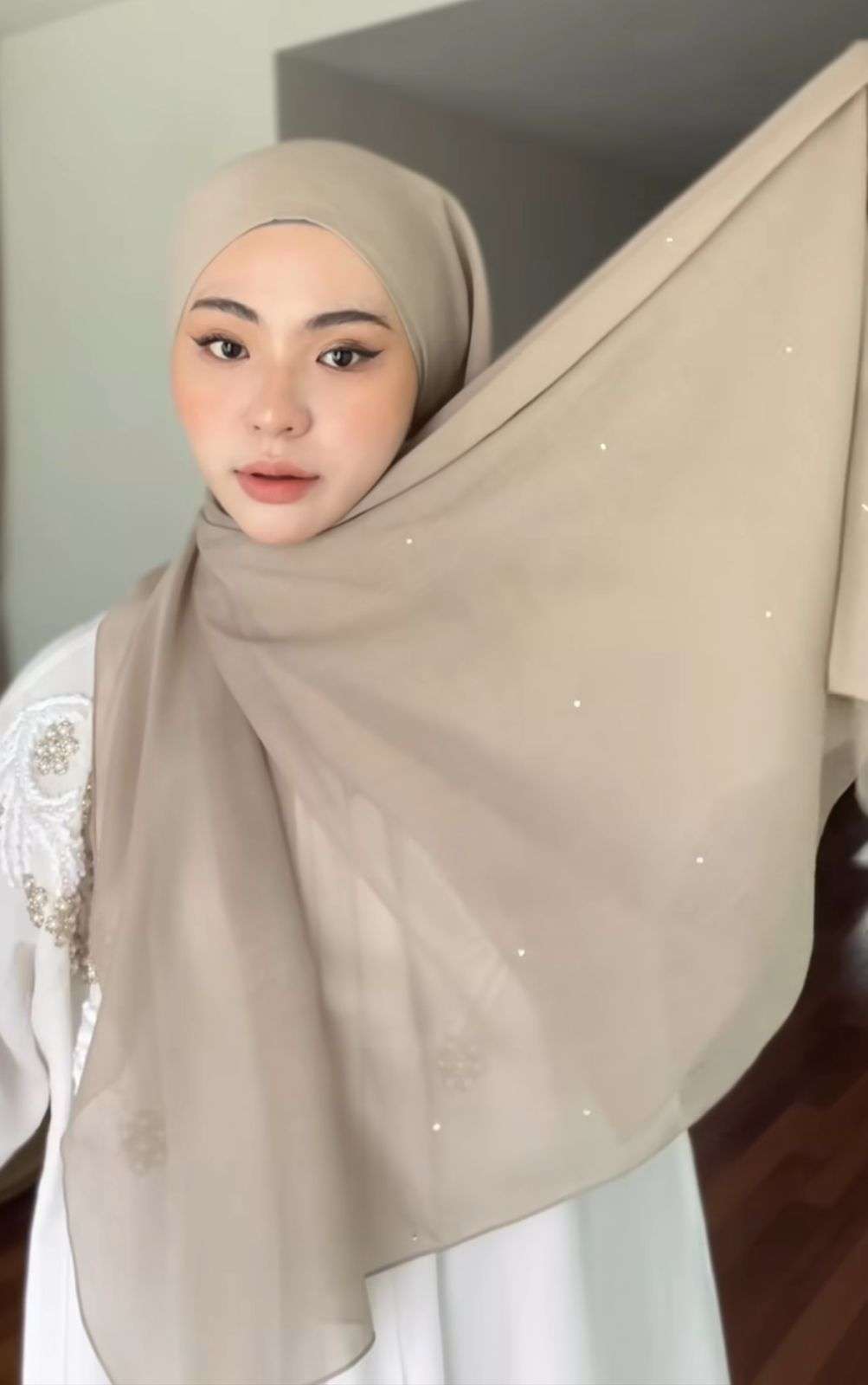 Sudah selesai, tampilannya seperti menggun pashmina padahal yang ia pakai hijab square.