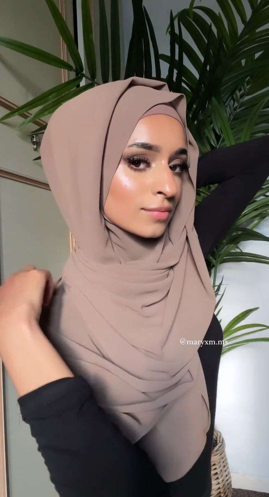 Lewat sebuah video yang diunggah ke Instagram oleh akun @maryxm.mx itu, Maryam terlihat mengenakan pashmina dengan cara sederhana.