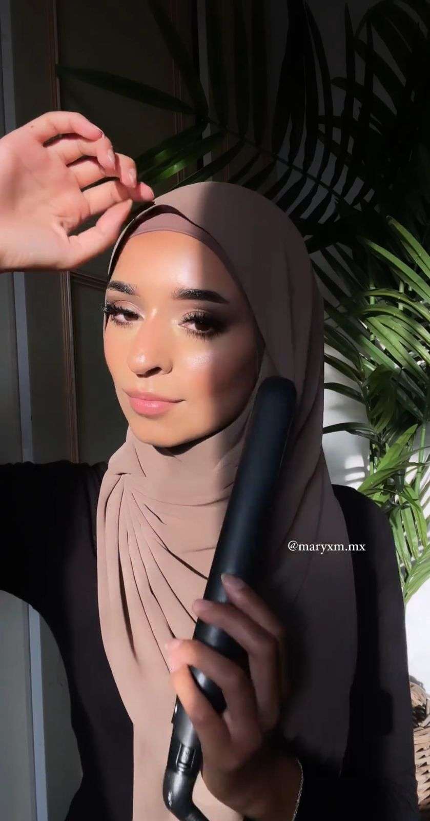 Seperti yang dilakukan influencer berhijab Maryam, yang membagikan trik styling pashmina dengan catokan rambut. Ya, alat untuk meluruskan rambut keriting itu difungsikan mirip setrikaan untuk merapikan hijab.
