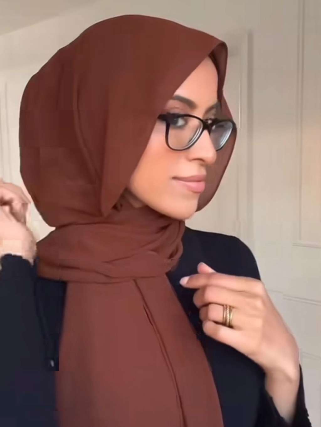 Cara ini membuat bagian kerudung yang membingkai wajah tidak terlalu ketat, sehingga memberikan ilusi loose yang akan tetap cocok dengan kacamata.