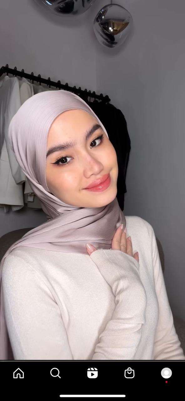 Dia menggunakan kerudung jenis ini dengan mudah. Sashfir memeragakannya dengan ciput di dalam kerudungnya.