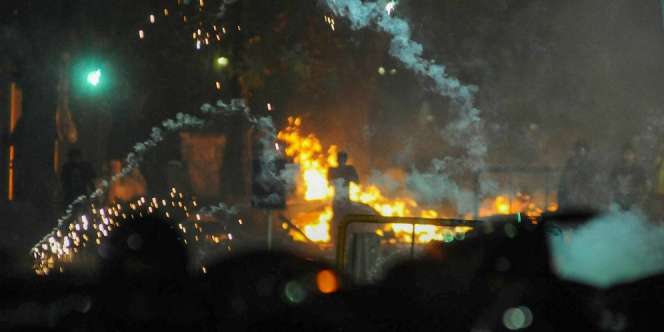 Polisi kini masih berusaha menenangkan massa yang masih anarkis.