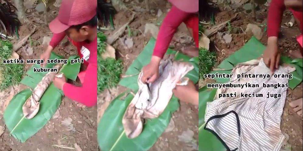Dalam video itu seorang penggali kubur yang tak disebutkan namanya menemukan benda aneh mirip pocong tapi berukuran mini.