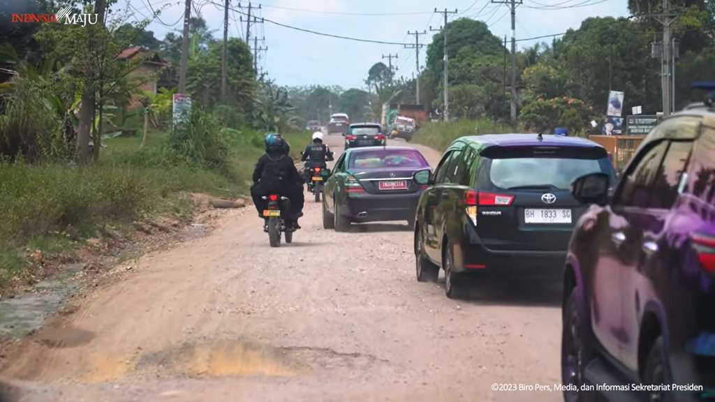 Dalam video yang dibagikan kanal Youtube Sekretariat Presiden terlihat mobil Jokowi tidak dapat berjalan lurus akibat banyak permukaan jalan tersebut tidak rata.