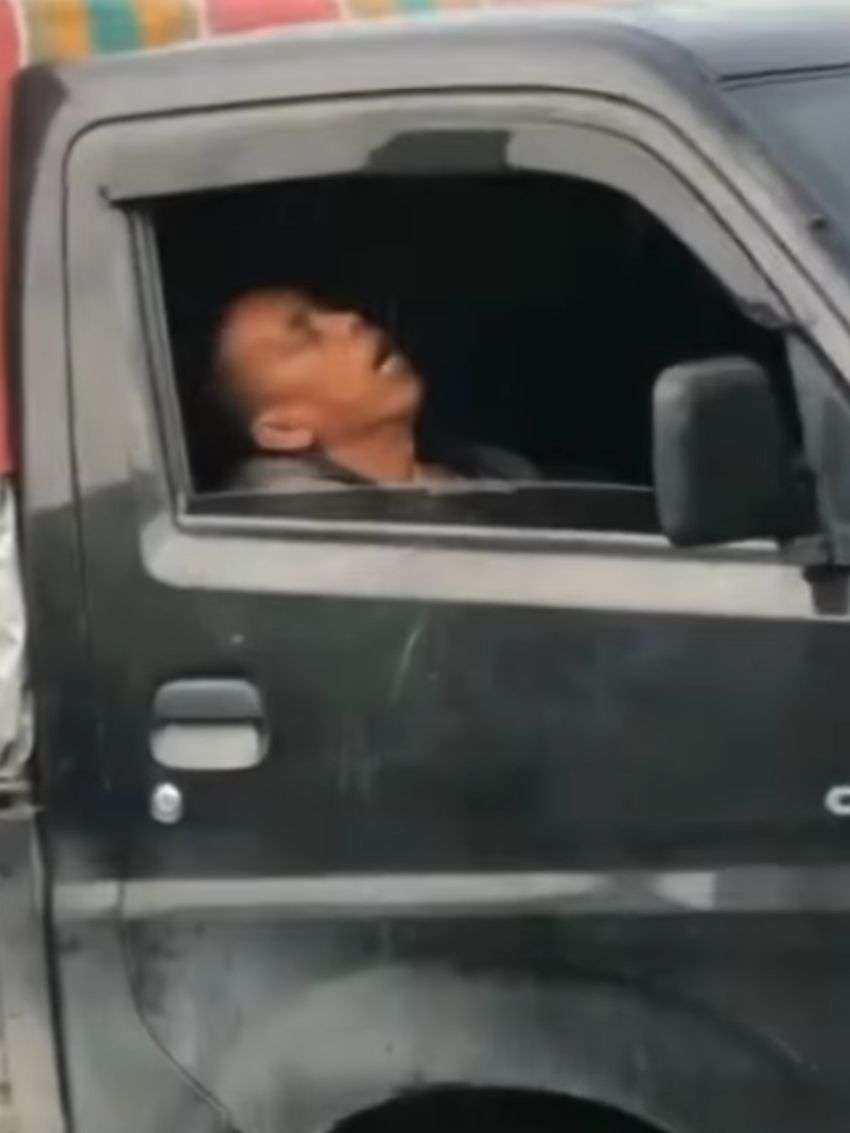 Aksi kocak sopir yang tertidur di tengah jalan itu sontak menarik perhatian warganet.
