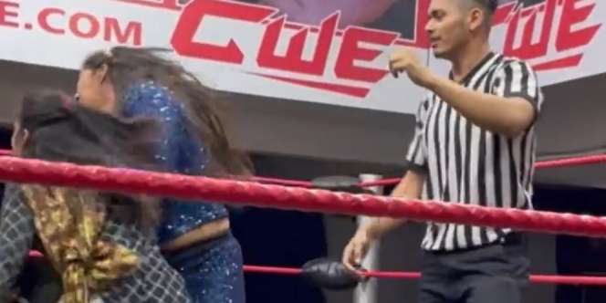 Dalam video lain, wanita itu dihentikan oleh dua wasit. Namun dia menendang salah satu dari mereka di pangkal paha. Ketika wasit lain datang, wanita itu memelototinya sehingga kabur dari ring.