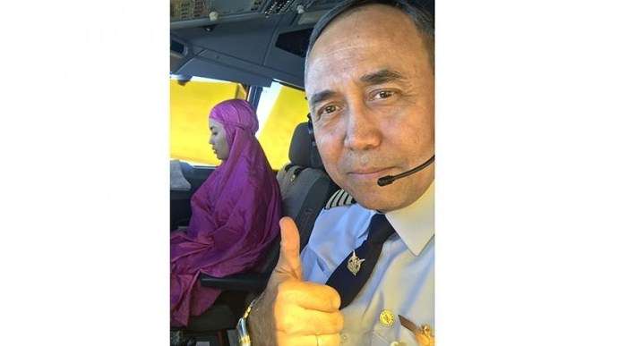 Tugasnya mengendalikan pesawat, tak lantas membuat kopilot cantik itu lalai pada kewajibannya sebagai seorang hamba Allah. Ia tetap menunaikan sholat meski sedang berada di kokpit pesawat Airbus 330 dalam penerbangan dari Denpasar, Bali menuju Kota Zhen Zhou, Tiongkok.